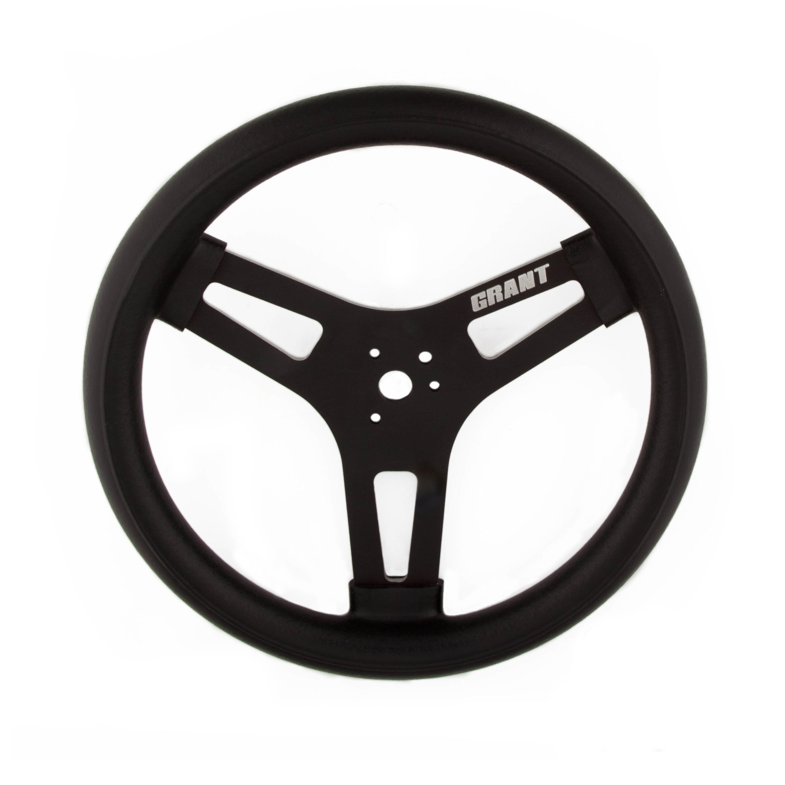 Steering Wheel – Performance Series – 13 in Diameter – 1 in Dish – 3-Spoke – Black Foam Grip – Aluminum – Black Anodized – Each