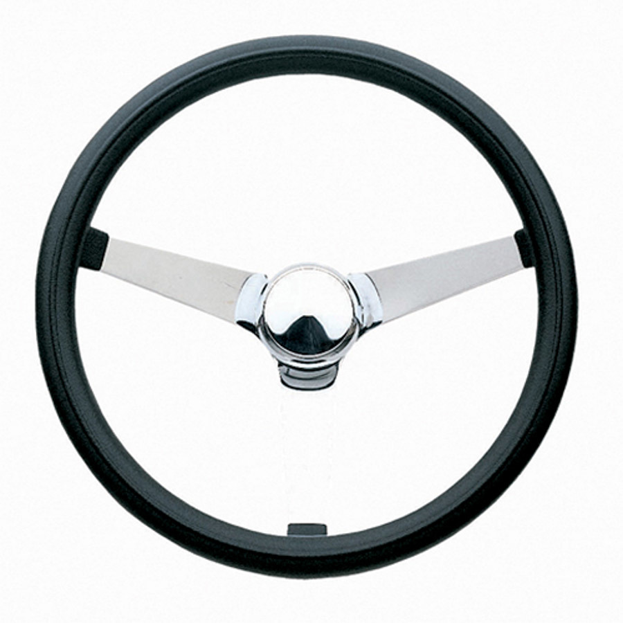 Steering Wheel – Classic Series – 14.75 in Diameter – 3.5 in Dish – 3-Spoke – Black Foam Grip – Steel – Chrome – Each