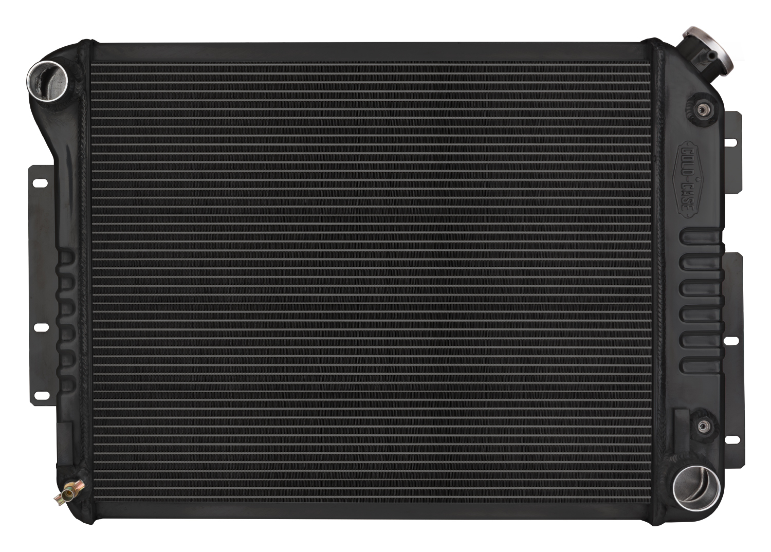 Radiator – Black Night Rider Series – 28.8 in W x 18.5 in H x 3 in D – Driver Side Inlet – Passenger Side Outlet – Aluminum – Black Paint – Automatic – GM F-Body 1967-69 – Each