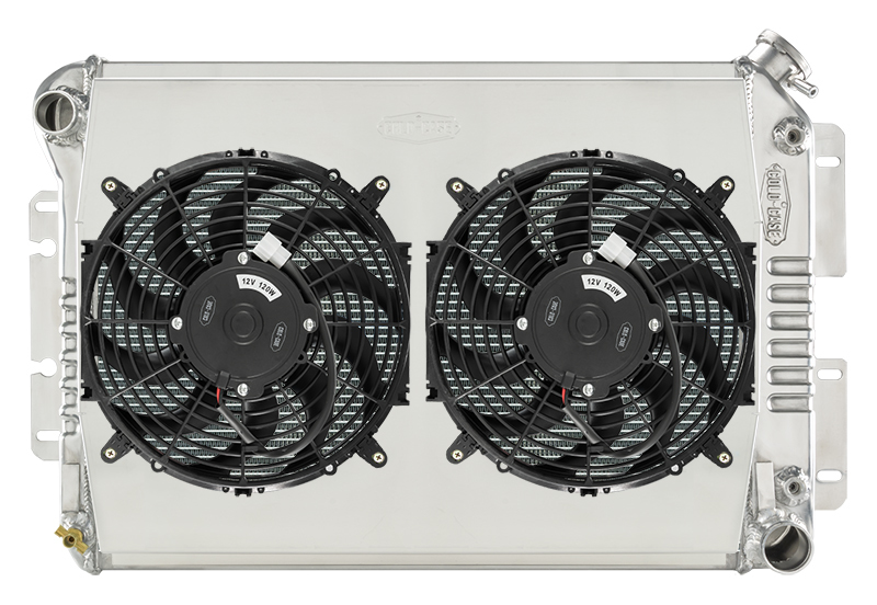 Radiator and Fan – 31.25 in W x 18.5 in H x 3 in D – Dual Fans – Driver Side Inlet – Passenger Side Outlet – Aluminum – Polished – Automatic – Big Block Chevy – GM F-Body 1967-69 – Kit
