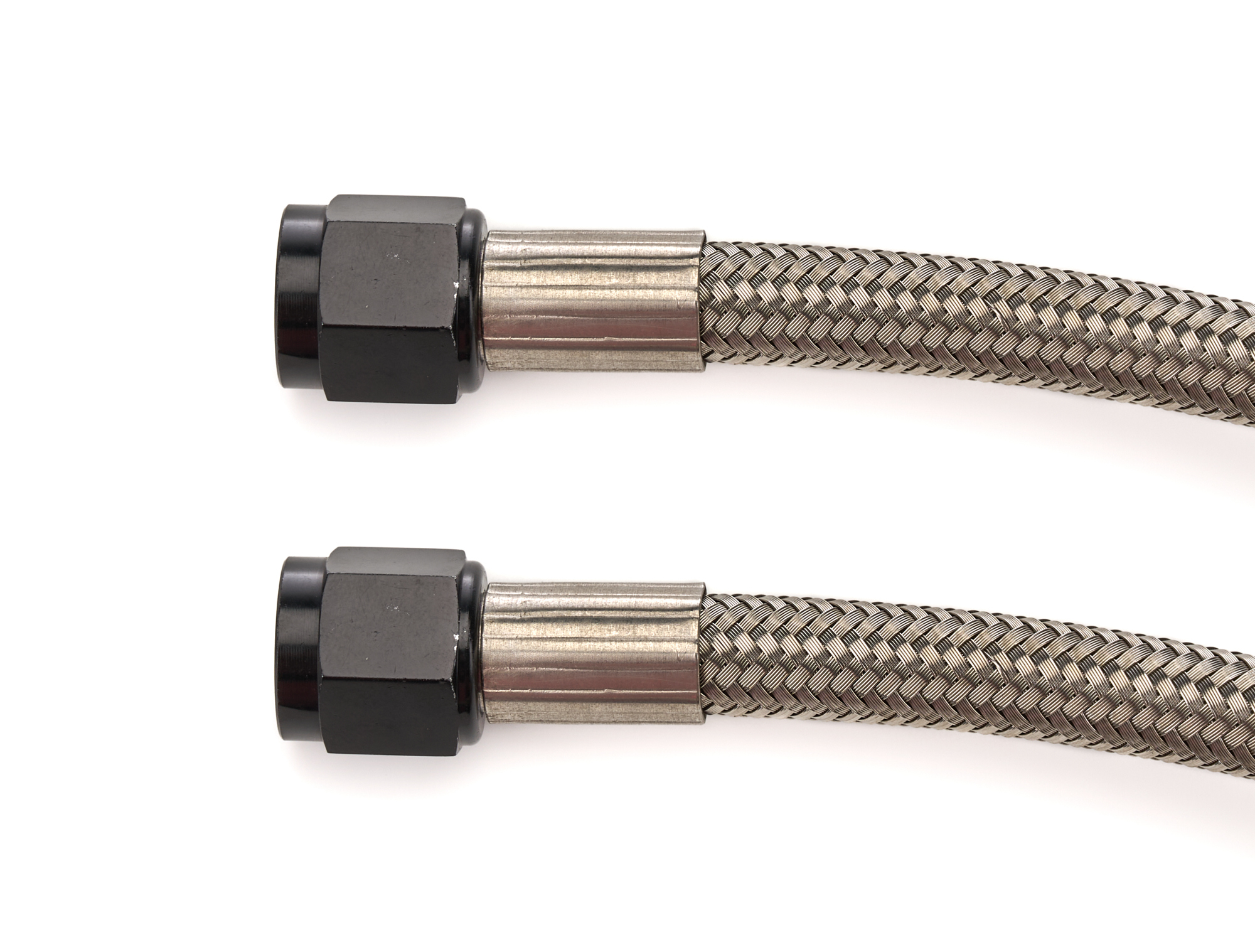 AN Hose Assembly – 900 Series – 36 in Long – 6 AN Hose – 6 AN Straight Female to 6 AN Straight Female – Braided Stainless – PTFE Lined – Aluminum – Black Anodized – Each