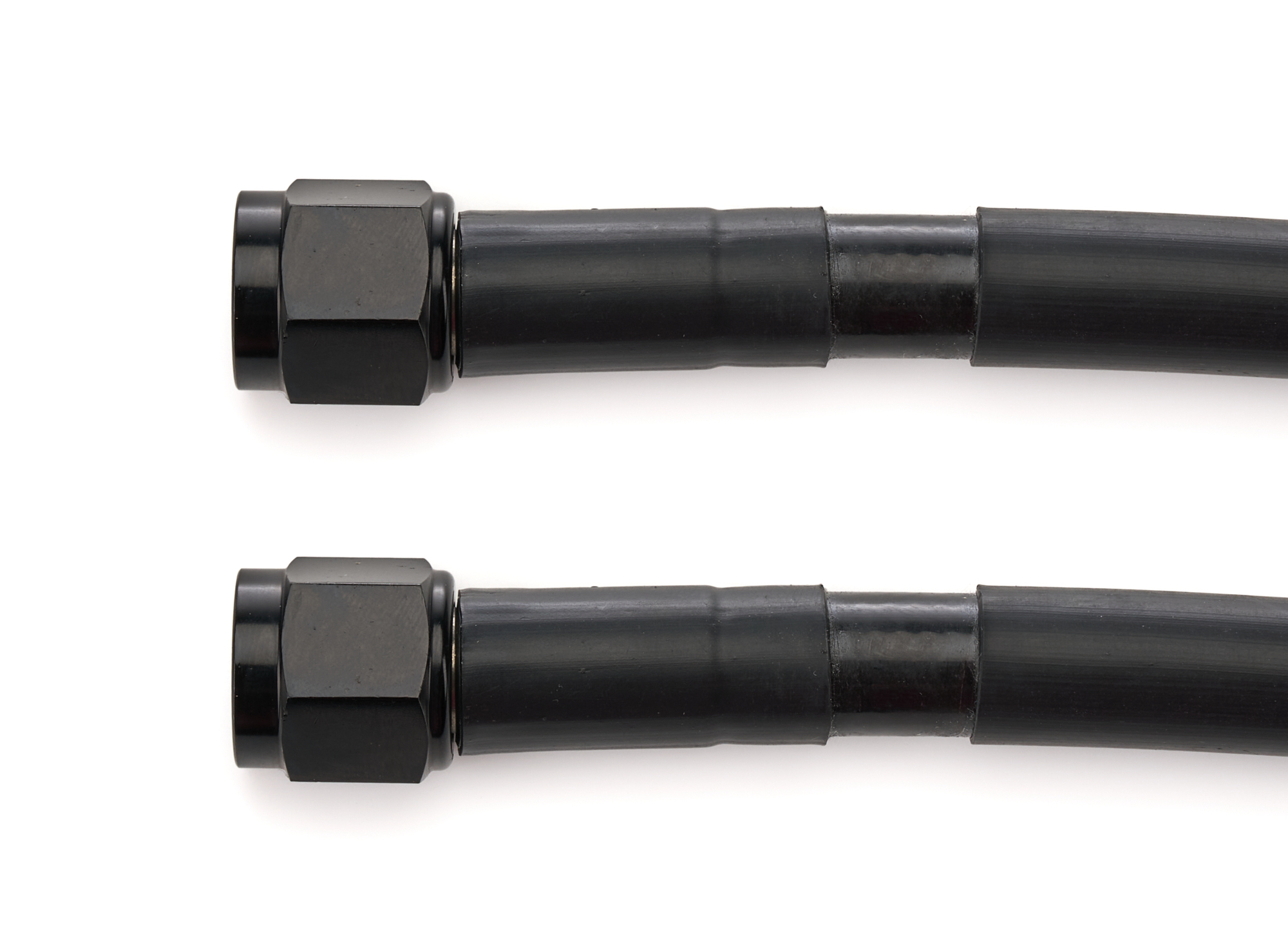 AN Hose Assembly – 902 Series – 6 in Long – 6 AN Hose – 6 AN Straight Female to 6 AN Straight Female – Braided Stainless – PTFE Lined – Coated – Aluminum – Black Anodized – Each