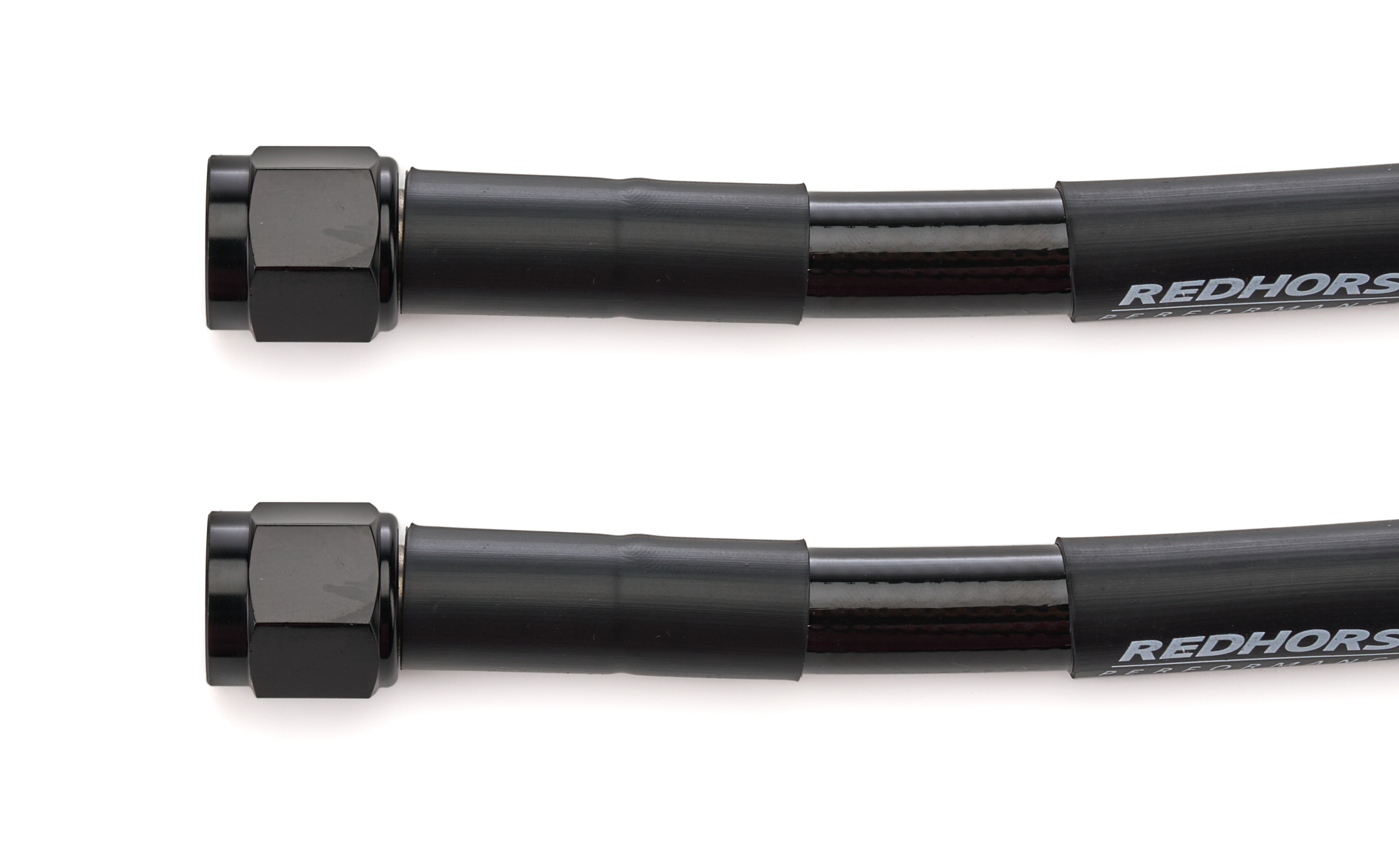 AN Hose Assembly – 902 Series – 8 in Long – 6 AN Hose – 6 AN Straight Female to 6 AN Straight Female – Braided Stainless – PTFE Lined – Coated – Aluminum – Black Anodized – Each