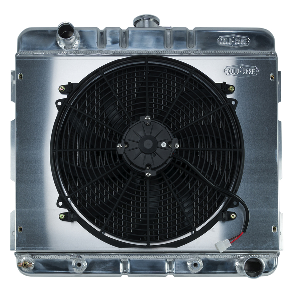 Radiator and Fan – 25 in W x 22.5 in H x 6.75 in D – Driver Side Inlet – Passenger Side Outlet – Aluminum – Automatic – Mopar A-Body / B-Body 1970-72 – Kit
