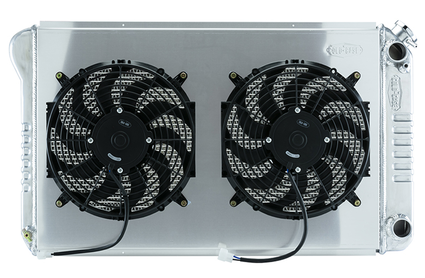 Radiator and Fan – 33.2 in W x 19 in H x 3 in D – Dual Fans – Passenger Side Inlet – Passenger Side Outlet – Aluminum – Polished – Automatic – GM LS-Series – GM F-Body 1970-81 – Kit