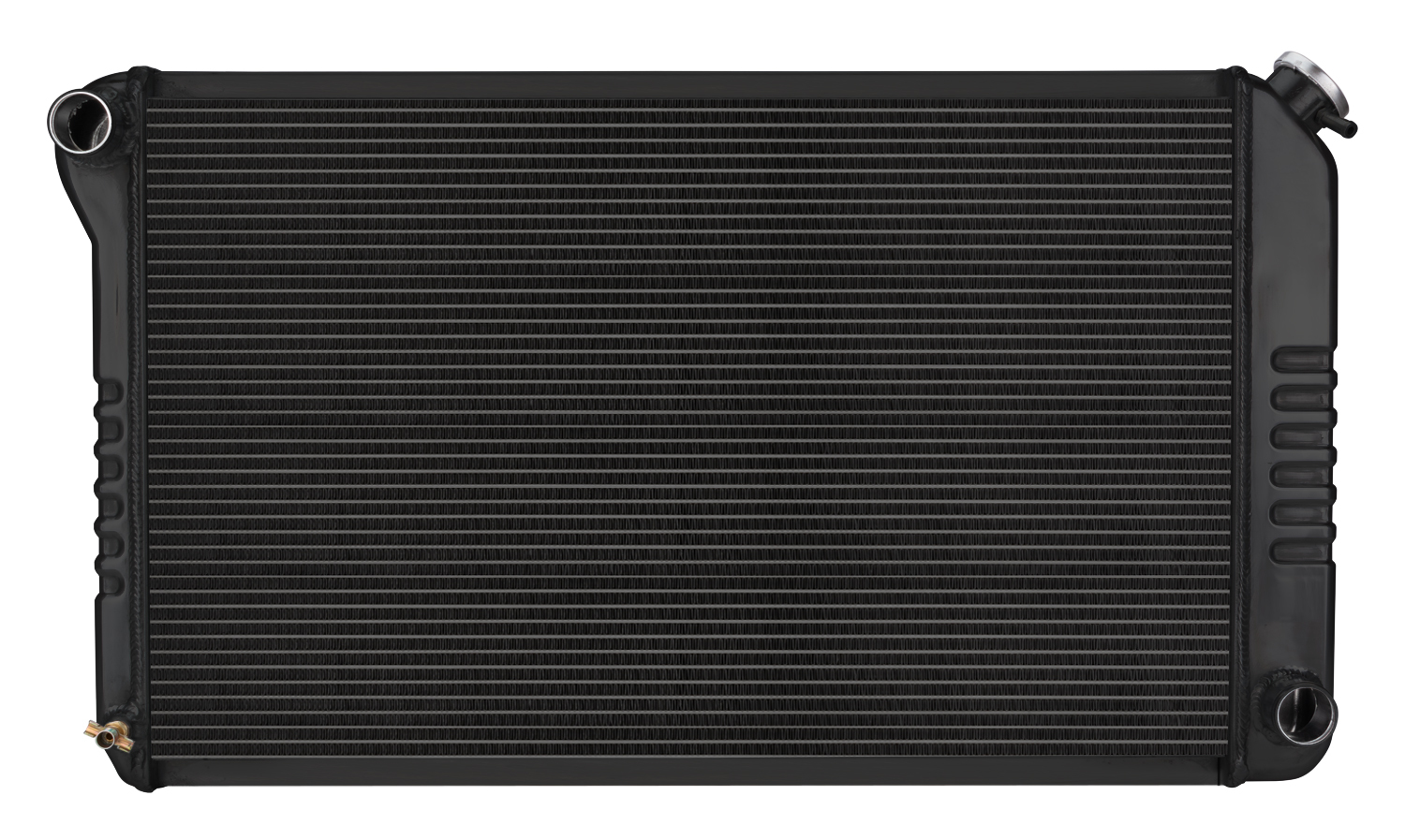 Radiator – Black Night Rider Series – 33.2 in W x 18.8 in H x 3 in D – Driver Side Inlet – Passenger Side Outlet – Aluminum – Black Paint – Manual – GM F-Body 1970-81 – Each
