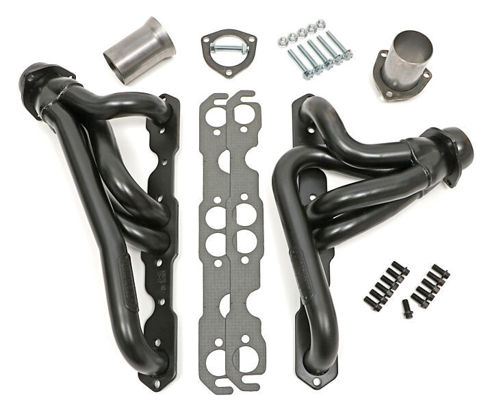 Headers – Street – 1.5 in Primary – 2.5 in Collector – Gaskets / Hardware Included – Steel – Black Paint – Small Block Chevy – Jeep CJ 1972-86 – Pair