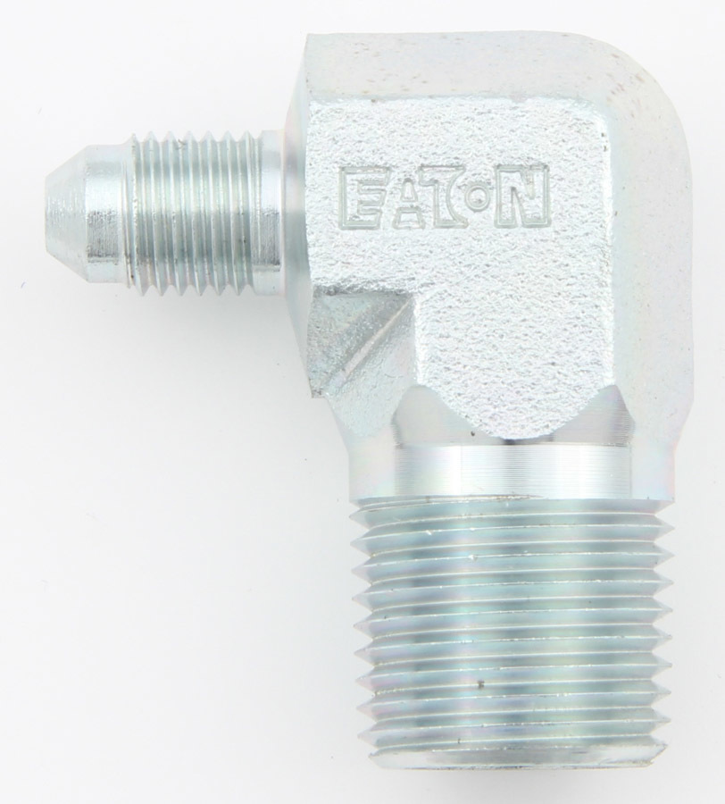 Fitting – Adapter – 90 Degree – 4 AN Male to 3/8 in NPT Male – Steel – Zinc Plated – Each