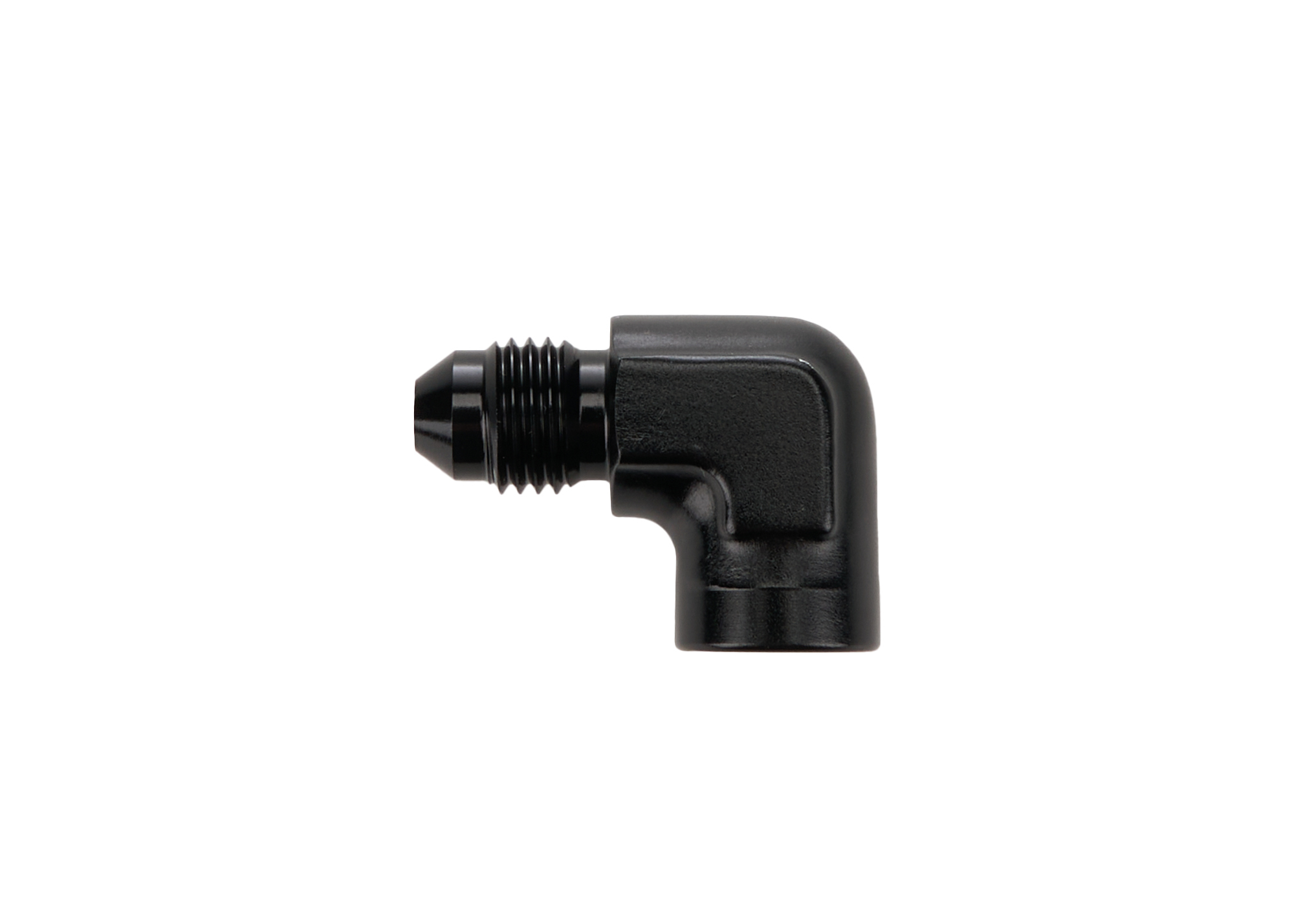 Fitting – Adapter – 90 Degree – 4 AN Male to 1/8 in NPT Female – Aluminum – Black Anodized – Each