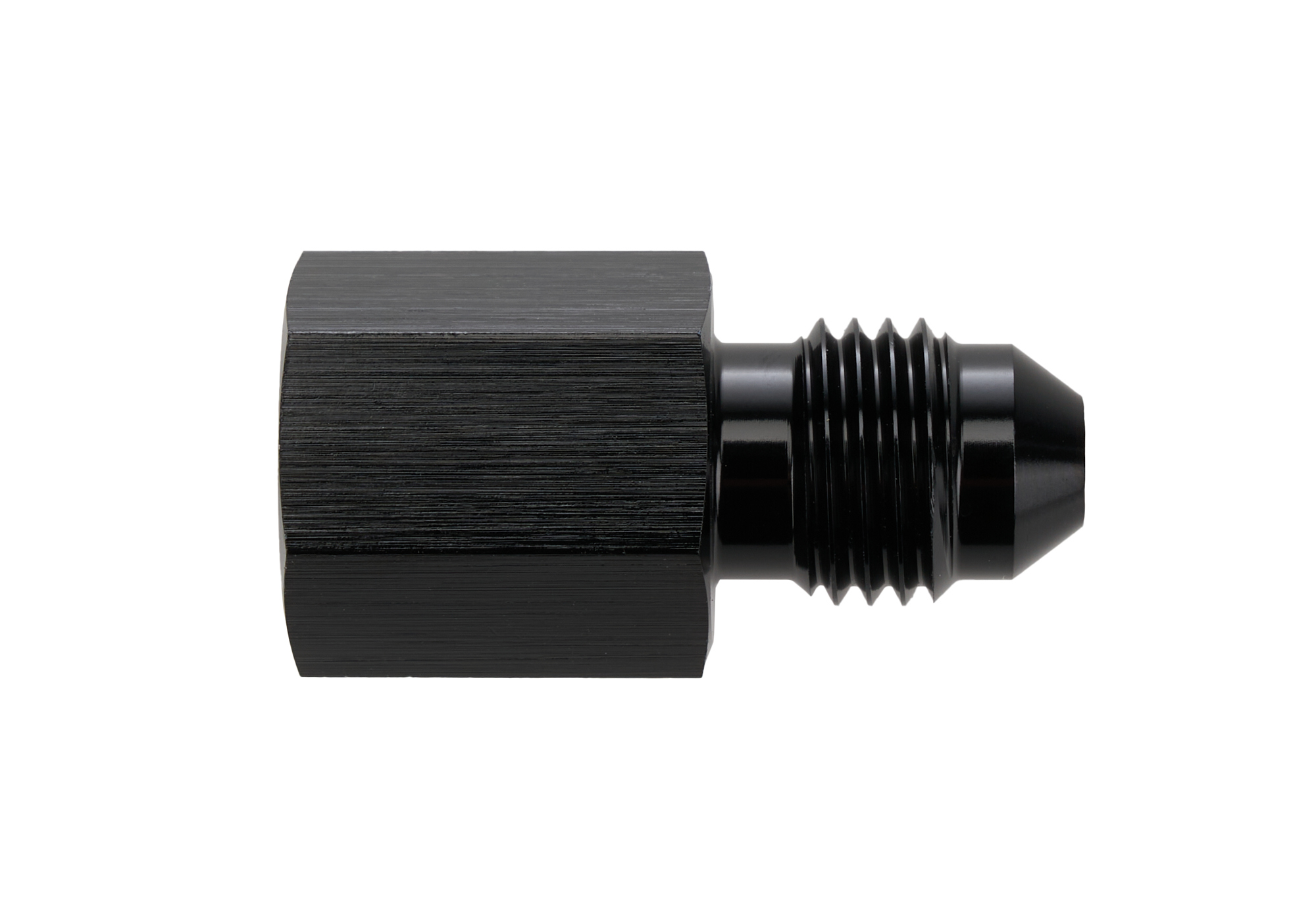 Fitting – Gauge Adapter – Straight – 1/8 in NPT Female to 4 AN Male – Aluminum – Black Anodized – Each