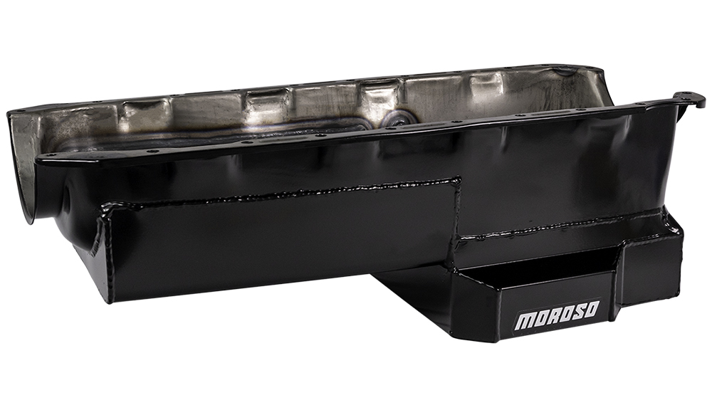 Engine Oil Pan – Street / Strip – Rear Sump – 6 qt – 8 in Deep – Baffled – Steel – Black Powder Coat – 2-Piece Seal – Big Block Chevy – Each