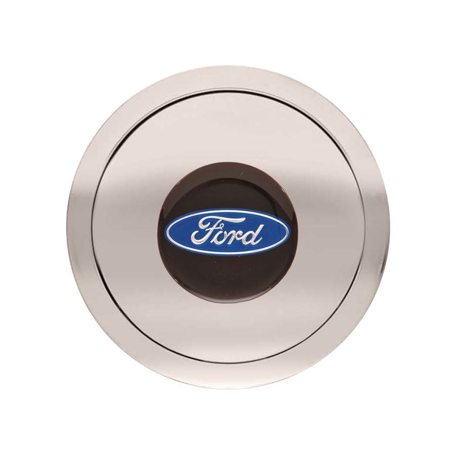 Horn Button – GT9 – Ford Blue Oval – Aluminum – Polished – 9-Bolt Steering Wheels – Each