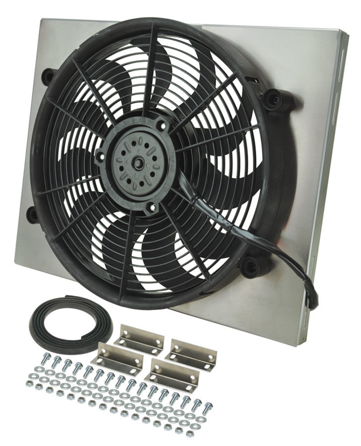 Electric Cooling Fan – HO RAD – 17 in Fan – Puller – 2400 CFM – 12V – Curved Blade – 21 x 16.75 in – 3 in Thick – Aluminum Shroud – Plastic – Kit