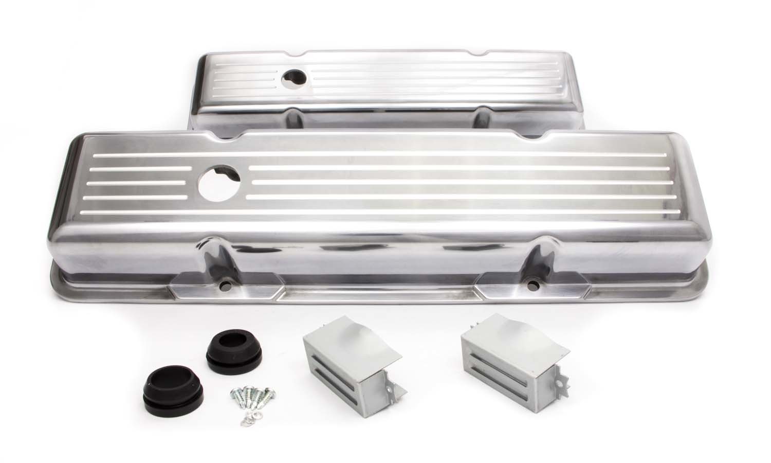 Valve Cover – Short – 2.563 in Height – Ball Milled – Baffled – Breather Holes – Grommets Included – Ball Milled – Aluminum – Polished – Small Block Chevy – Pair