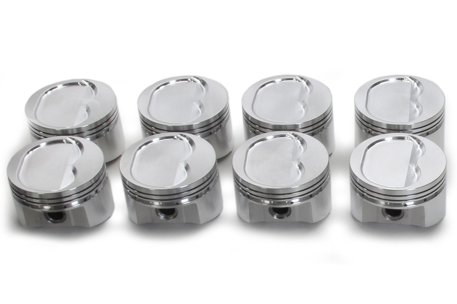 Piston – 350 Inverted Dome – Forged – 4.030 in Bore – 1/16 x 1/16 x 3/16 in Ring Grooves – Minus 24.00 cc – Small Block Chevy – Set of 8
