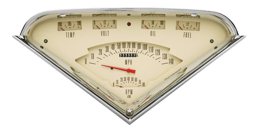 Gauge Kit – Tach Force – Analog – Water Temperature / Voltmeter / Oil Pressure / Fuel Pressure / Tachometer / Speedometer – Tan / Chrome Panel – GM Fullsize Truck 1955-59 – Kit